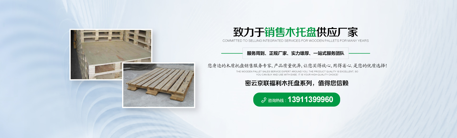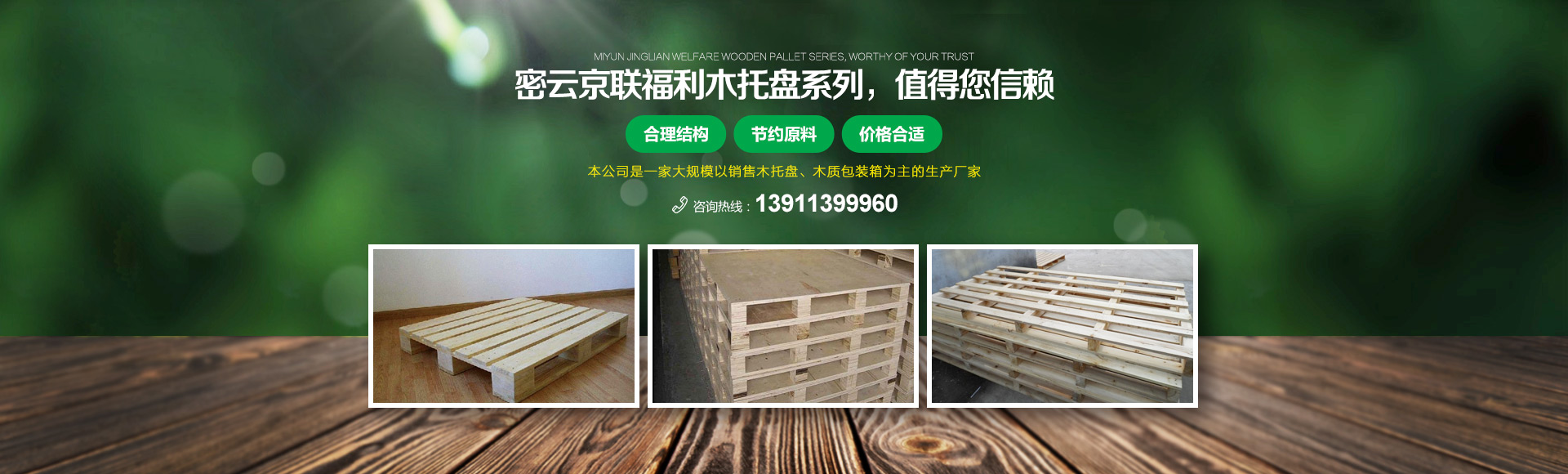 北京京聯(lián)國順木制品有限公司 (原北京市密云縣京聯(lián)福利木制品廠)成立于1993年,位于北京市密云縣西田各莊鎮(zhèn)蒼頭村,占地約5000平米。我公司工廠是一家大規(guī)模以銷售木托盤為主的生產(chǎn)廠家。本工廠是一家直接采購原木,按客戶要求生產(chǎn)規(guī)格尺寸的托盤,我公司工廠位于河北省承德市有著木材加工點,可以做到,從山上的木頭下山到客戶手中的托盤都是一手貨,減少了中間商的費用,所以我公司售出的產(chǎn)品對北京這個龐大的市場來說在同樣的規(guī)格尺寸的托盤來說價格比較占優(yōu)勢。
